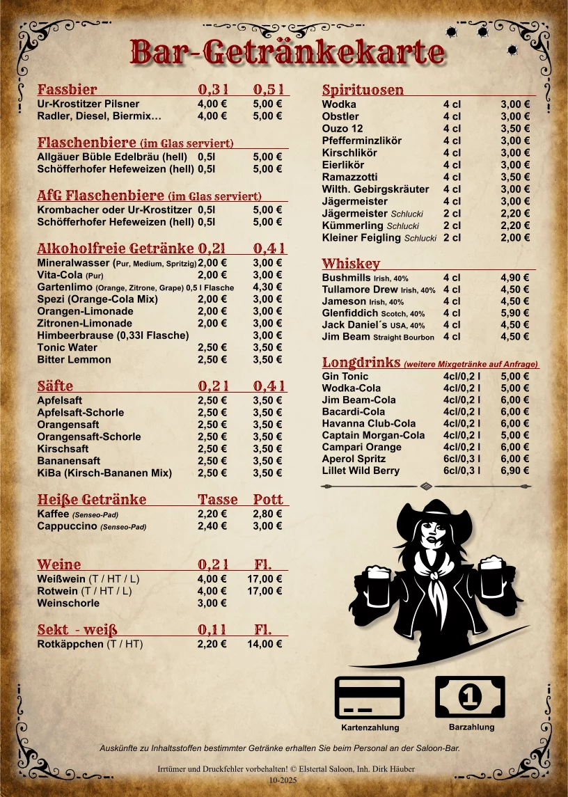 von uns bezogen werden. Die Getränke erhaltet ihr von unserem