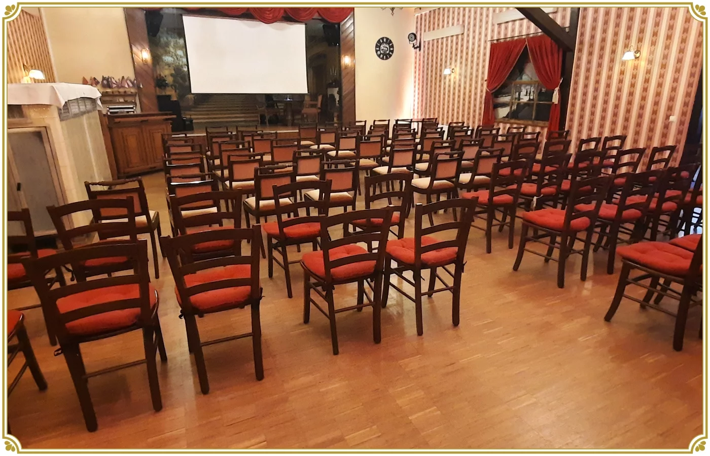 - 80 Sitzplätze bei Reihenbestuhlung (z.B. bei Tagungen, Seminare, Versammlungen...)